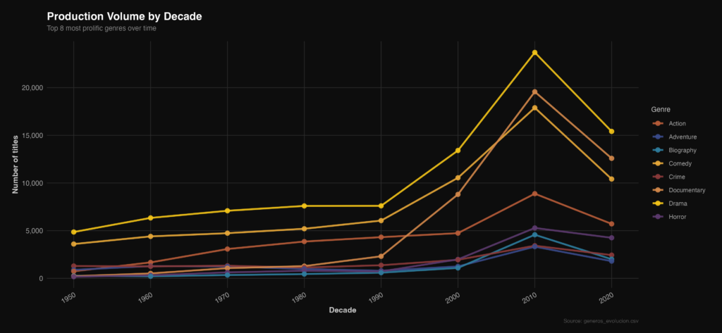 - The Streaming Effect: This post-1990 surge is no accident; it responds to the democratization of digital cameras and, later, the need of platforms like Netflix and HBO for real, cost-effective content with high audience engagement.